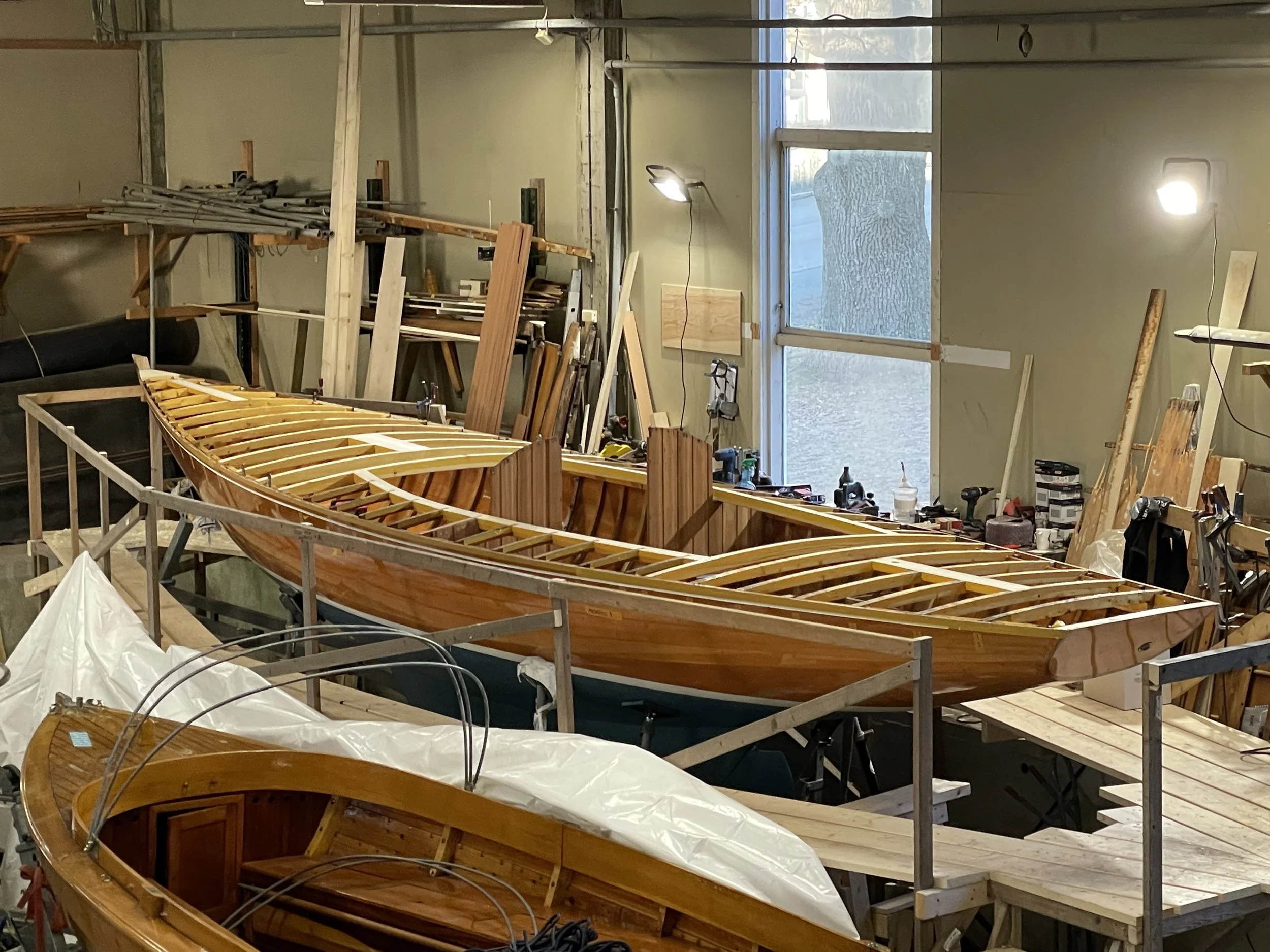 Høsten 2024 var ON96 tilbake i verkstedet, for utbedring av dekk og hytte. Det gamle dekket og flere dekksbjelker ble fjernet. Dekksbjelkene rundt masten var spesielt svake, og vi valgte derfor å dimensjonere opp disse. Hele bjelkelaget ble deretter festet med skruer og epoxy. Det nye dekket besto av 2 lag med 6mm kryssfinér som deretter ble belagt med glassfiber og epoxy. Den nye hytta ble bygget i mahogni, med et kaldbakt hyttetak.